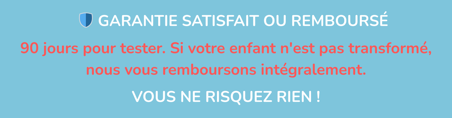 🛡️ GARANTIE SATISFAIT OU REMBOURSÉ 90 JOURS. Si votre enfant n'est pas transformé, nous vous remboursons intégralement